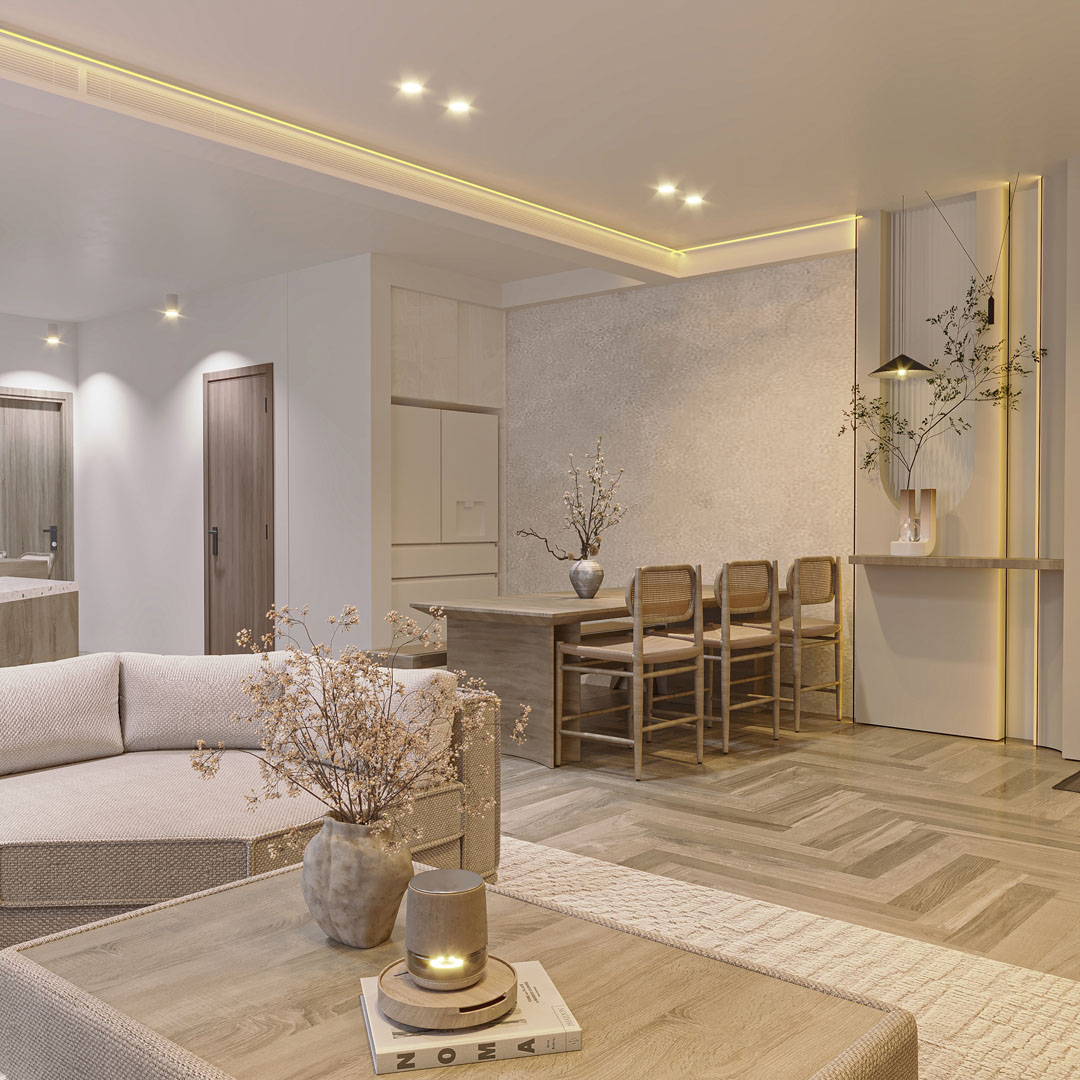 The primary goal for this project was to create a deeply serene and functional home inspired by Japandi design principles—blending Scandinavian simplicity with Japanese naturalism. The challenge was to craft an environment that feels both minimalist and warm, maximizing natural light and incorporating natural materials throughout. The vision was to design a tranquil urban escape that promotes calm, comfort, and mindful living.