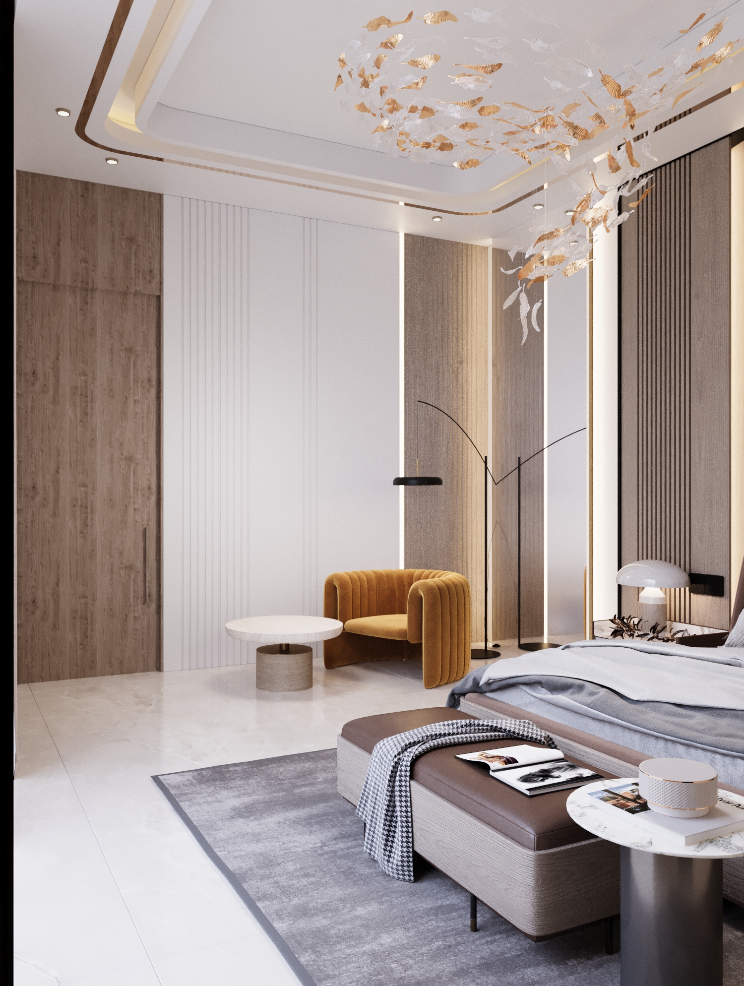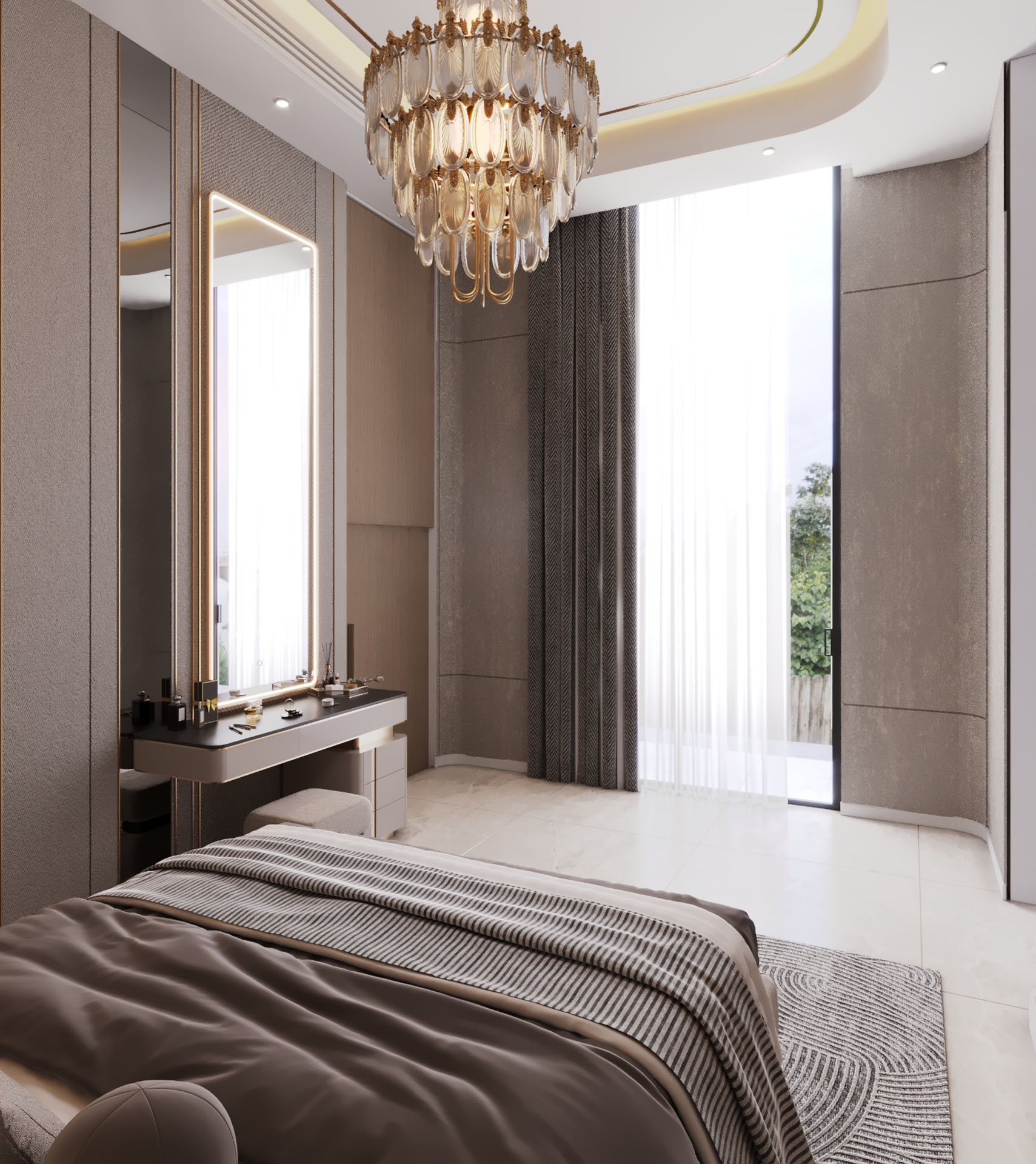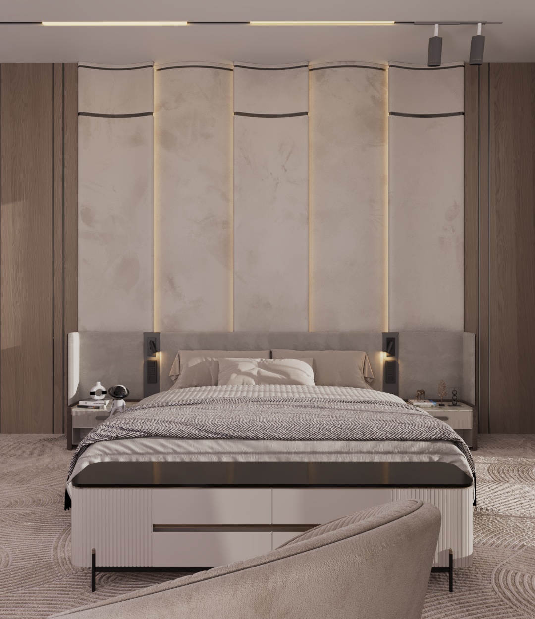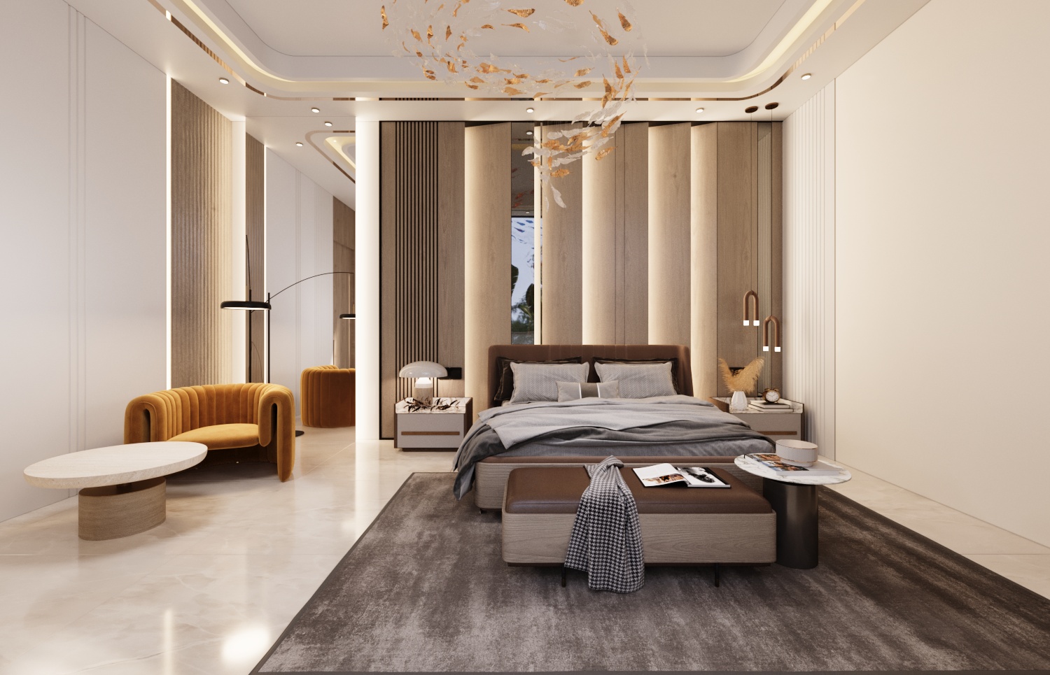 The upper floors of this villa were conceived as a private sanctuary, a world away from the formal entertaining spaces below. The primary challenge was to design a multi-level living experience that masterfully balanced shared family areas with highly personalized private suites. Our goal was to create a collection of unique bedrooms and lounges, each reflecting a distinct personality, yet all connected by a cohesive thread of modern luxury and unparalleled comfort.