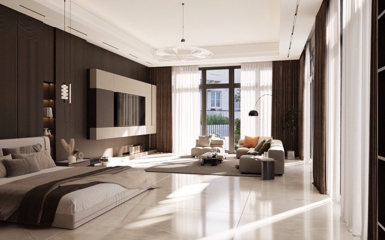 Expansive Private Suite: The ground-floor master suite is a self-contained sanctuary, complete with a spacious sleeping area, an integrated lounge, a walk-in closet, and a luxurious bathroom.