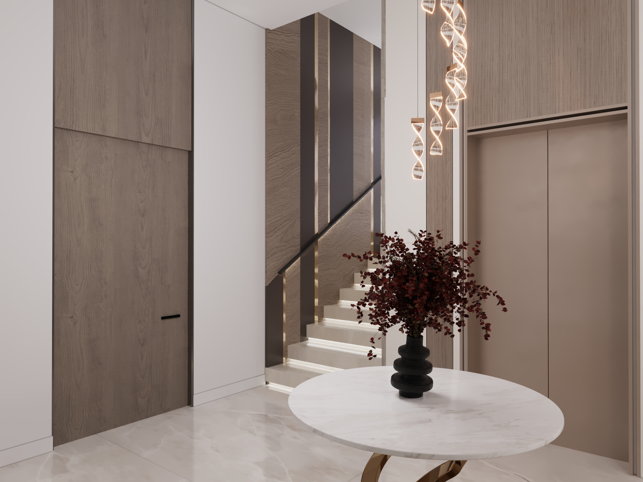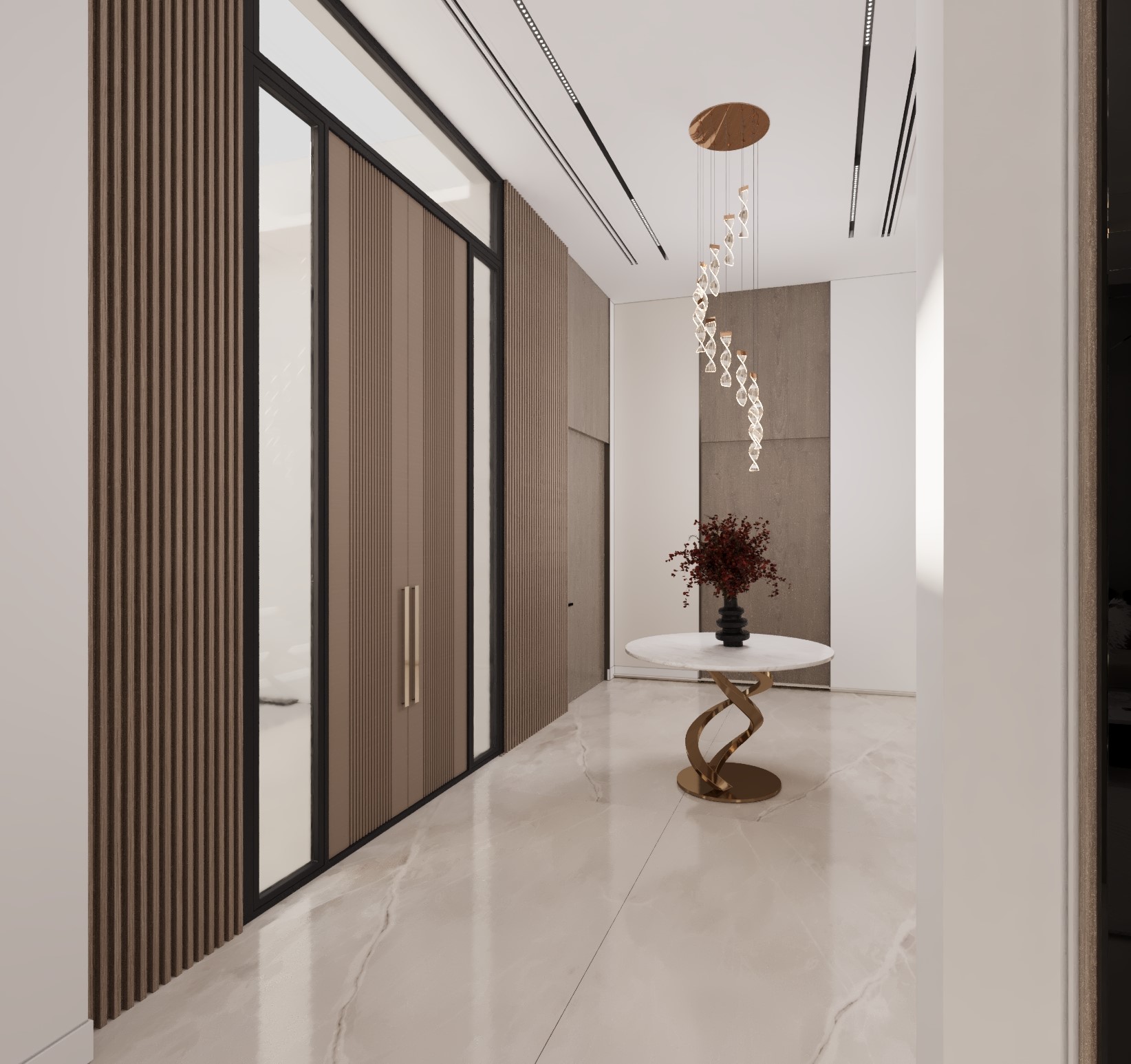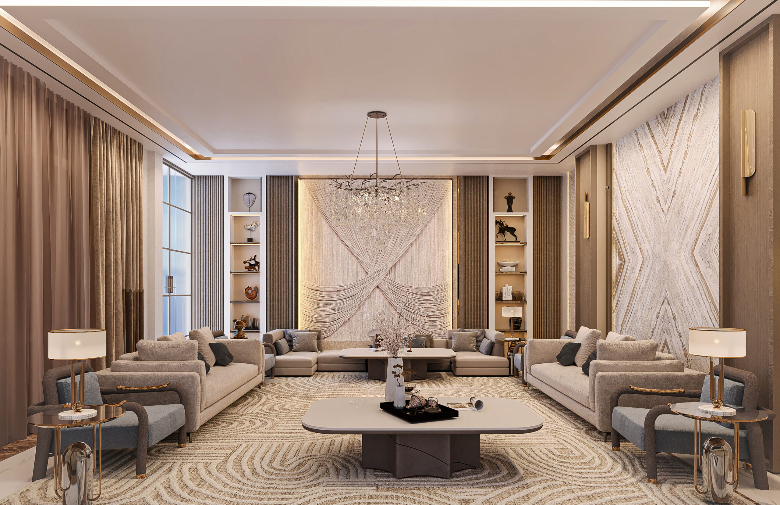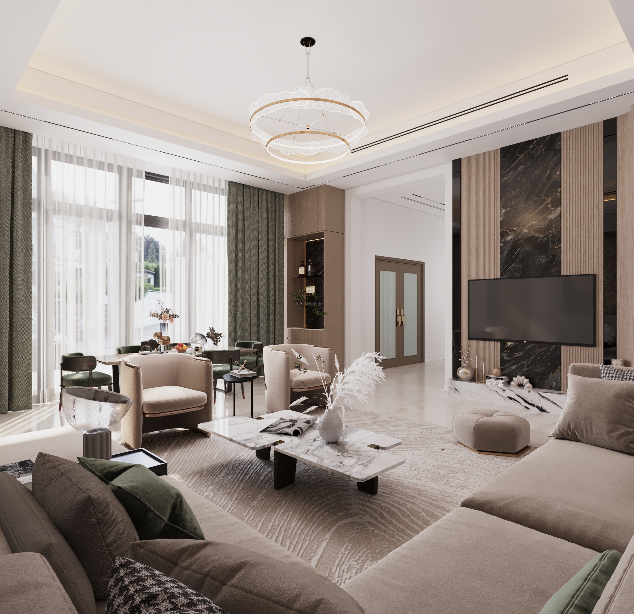 The ground floor of this villa was envisioned as the heart of the home, a space where grand entertaining and private daily life could coexist in perfect harmony. The core challenge was to design a floor plan that seamlessly connects multiple distinct zones—including a formal men’s majlis, a bright women’s majlis, a private master suite, and two kitchens—while maintaining a cohesive aesthetic of modern luxury. The goal was to create an environment that felt both expansive and intimate, ensuring a smooth and intuitive flow for residents and guests alike.