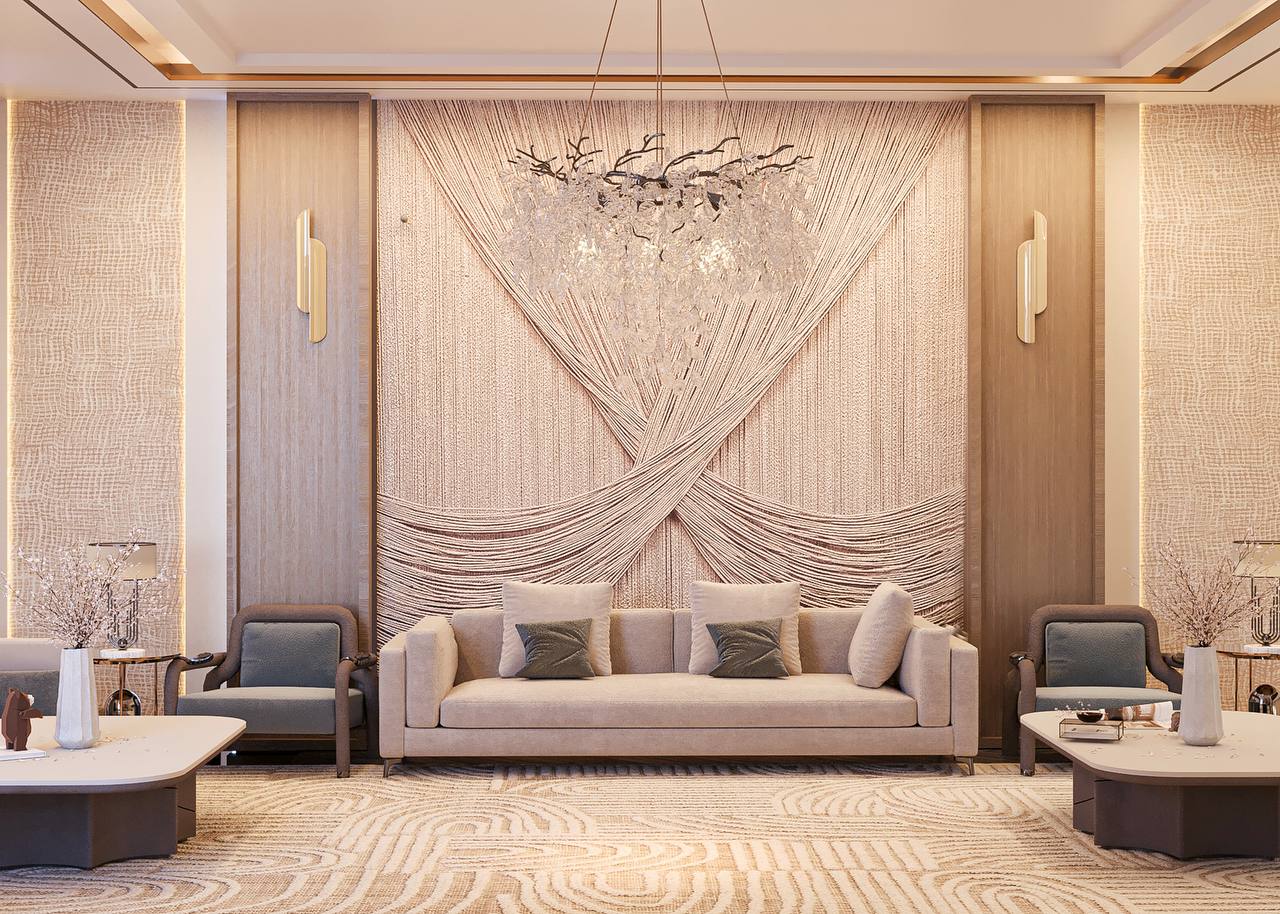 Bespoke Materials & Craftsmanship: Throughout the floor, custom elements like rich wood paneling, intricate plasterwork, and elegant fabric art create a unique and sophisticated atmosphere.